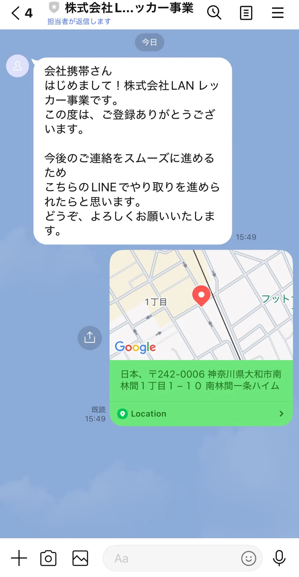 スムーズにお伺いできるよう LINEで位置情報を送信していただけます。